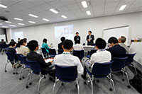 2013年11月は、社外の有識者をお招きして、対話形式でSCSKの環境問題への取り組みを共有し、社会の環境負荷を低減させる事業活動の可能性について議論しました。ワークショップでは、SCSKが取り組むべき環境ビジネスについて意見を出し合いました。