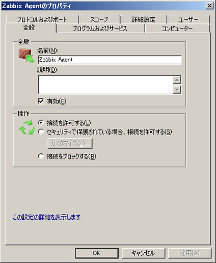 Windows上のFirewallの設定を変更して、起動したZabbixエージェントに対して、デフォルトであればポート番号10050番でZabbixサーバ側から接続できるよう許可しておきます。