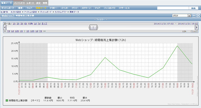 具体例を示すとすると、時間単位での販売総額を1時間単位で集計しているようなシステムであった場合、その1時間当たりの販売総額をZabbixサーバに送ることで、時間ごとの販売総額の推移をグラフ化して見ることができるようになるため、何時頃に多く販売できているかという傾向を把握しやすくすることができます。