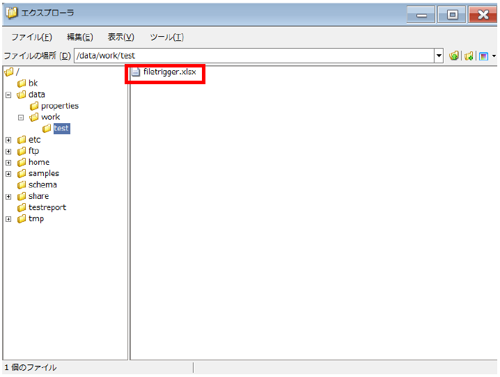 「/data/work/test/filetrigger.xlsx」が削除されていることを確認します。