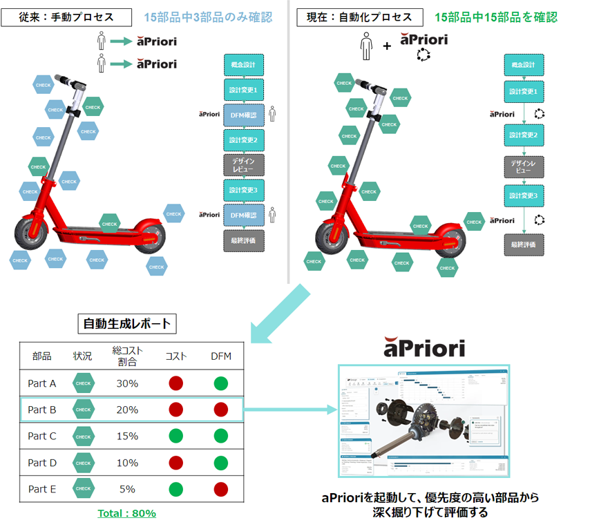・優先度の高い部品に絞ってaPrioriで詳細検討を行い、関係者と議論。競争力のある製品づくりに時間を割く