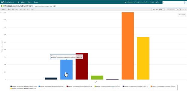 ・aPrioriの材料消費レポートを使用し、中国から輸入される重要な材料 アルミニウムを特定します。