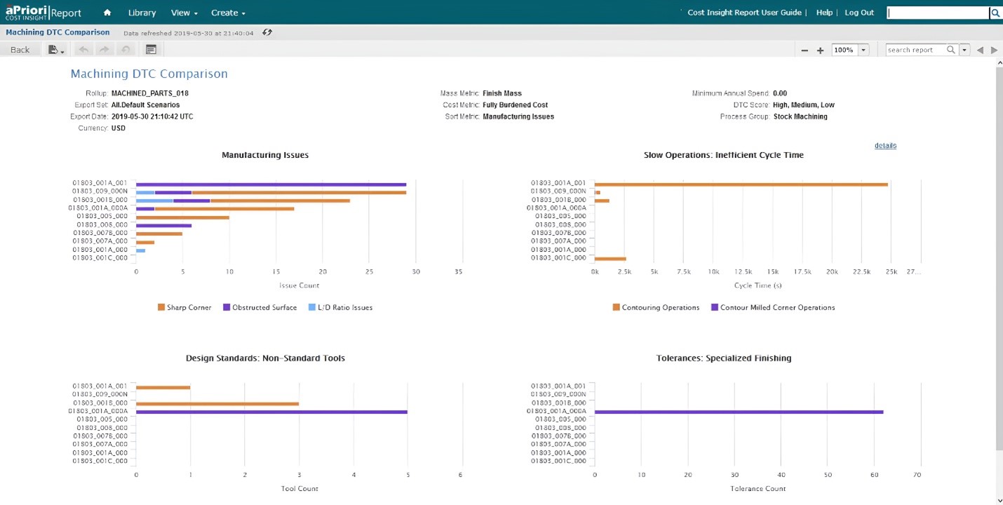 ・aPrioriは会社の製品ライン全体のアルミニウム使用量を分析し、それに依存する部品を強調します。