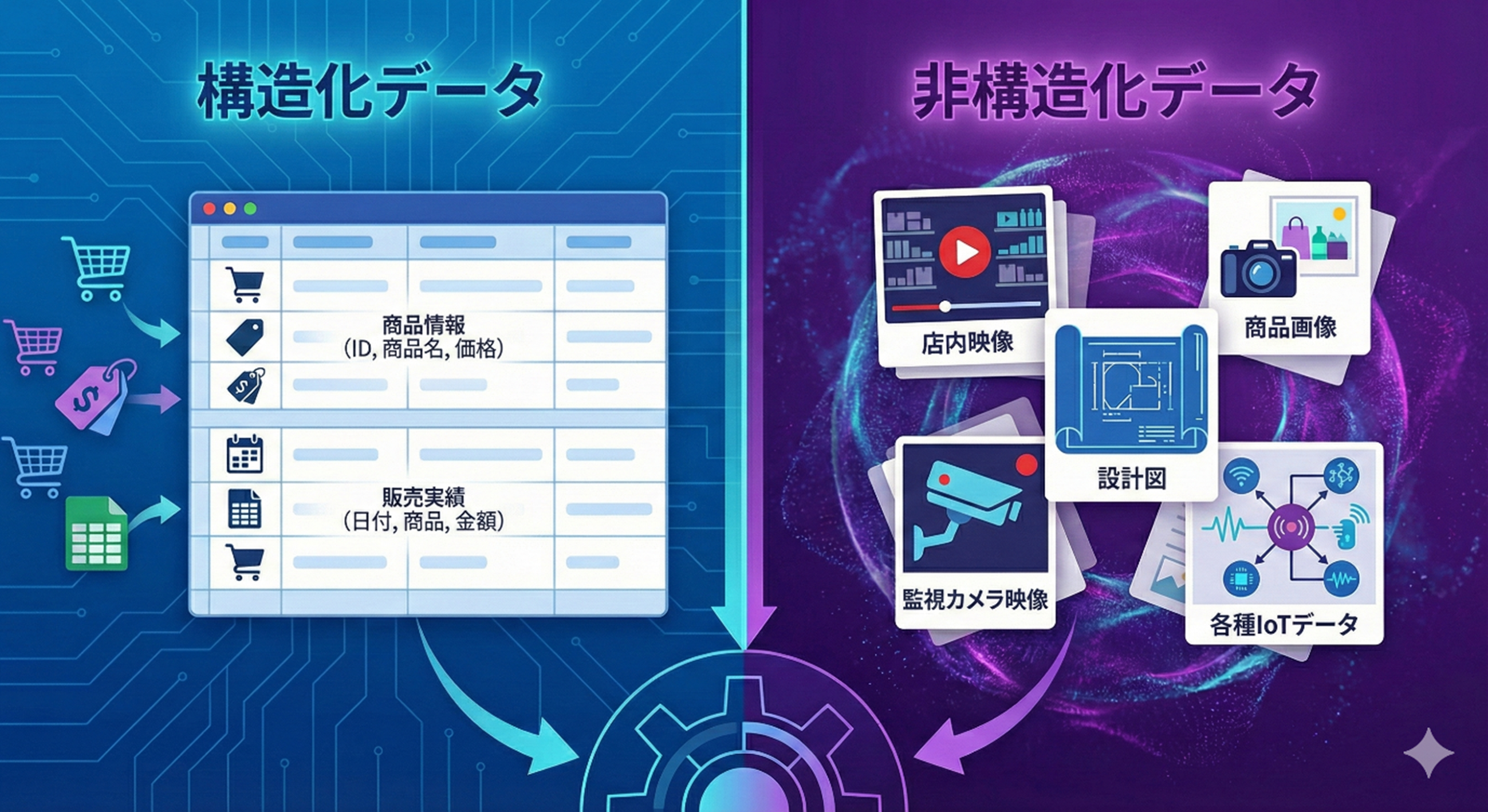 それは、「データベースの数字(構造化データ)は活用できているが、ファイルサーバーやクラウドストレージにある画像や動画(非構造化データ)が、手付かずのまま眠っている」という課題です。
