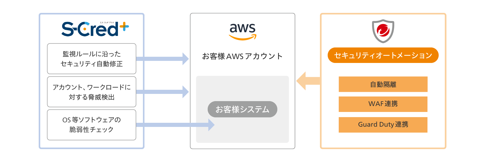 また、ウイルス対策ソフトウェア(TrendMicro社 Cloud One Workload Security)と連携した、より強固なセキュリティオートメーション機能も利用いただけます。