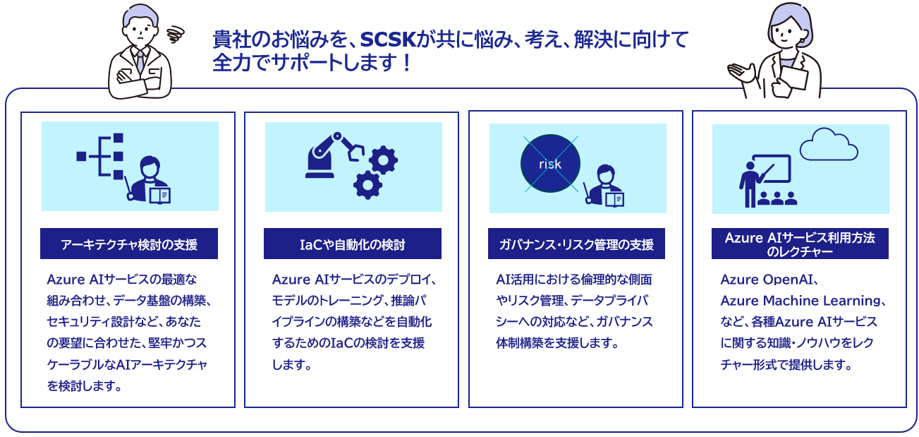 Azure AI導入で多くの企業が直面する課題を整理し、SCSKの具体的な解決アプローチを提示。安心して活用を進められます。